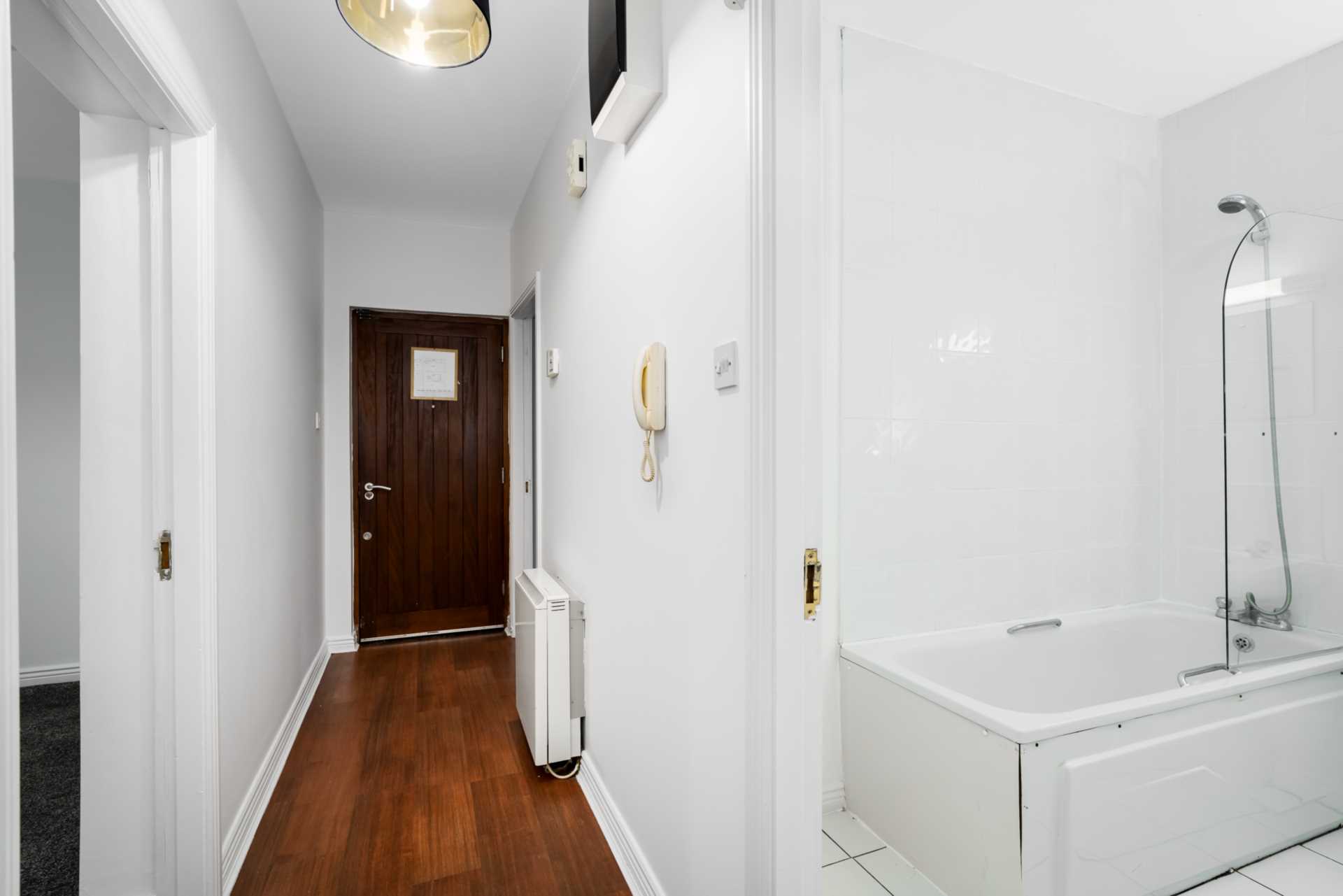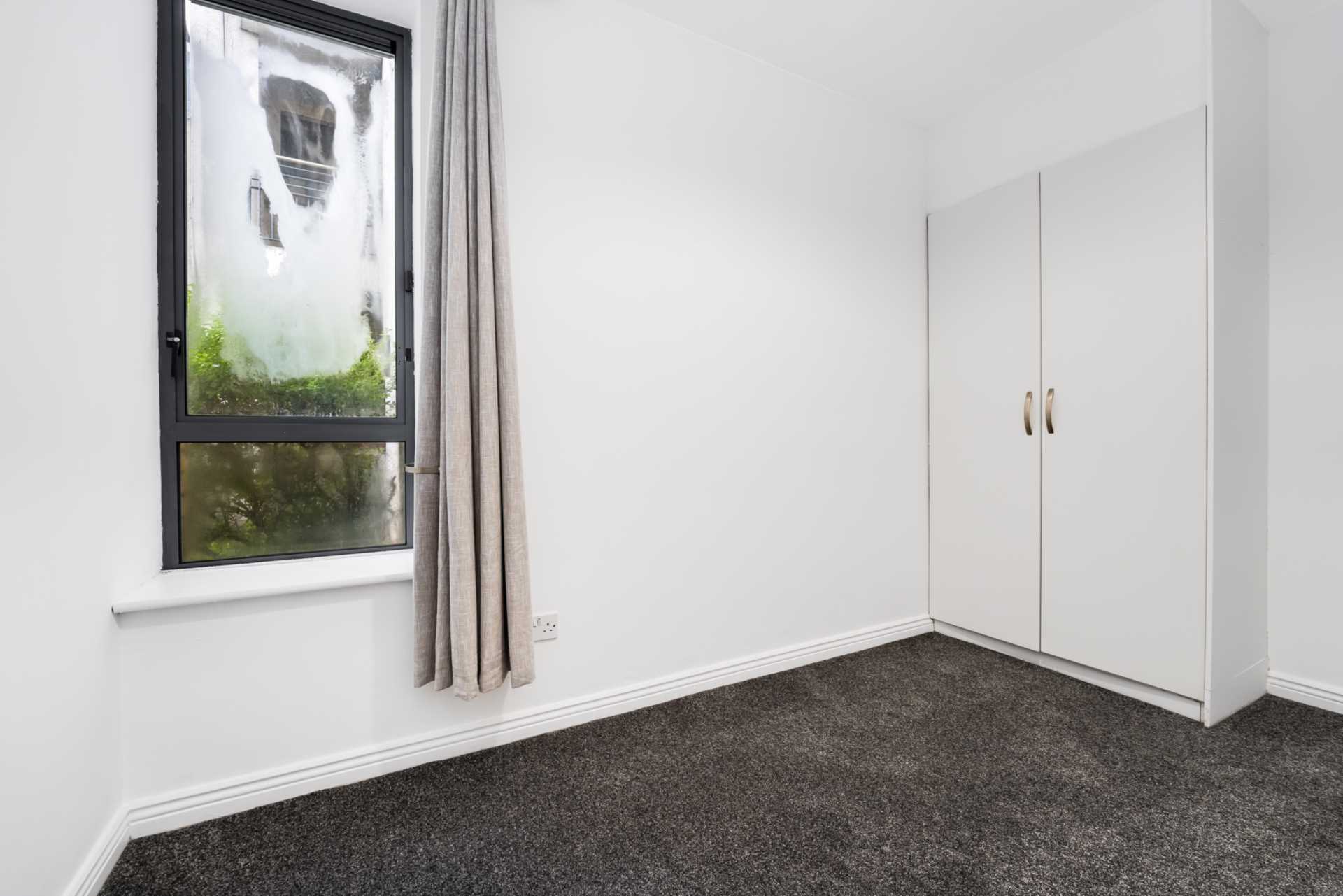 Larger double bedroom. L-shaped room. Fitted wardrobes. New carpet. Window to front courtyard.