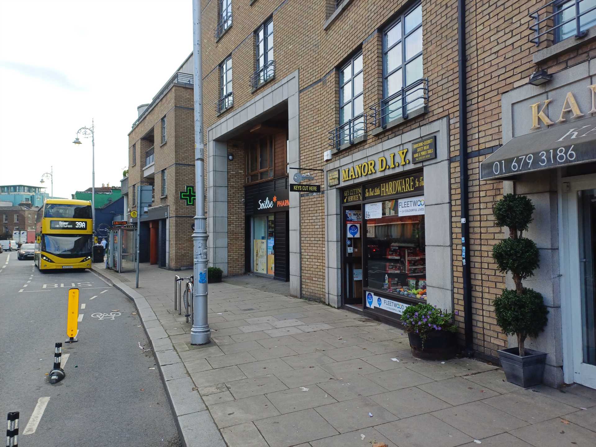 Norseman Court faces onto Manor Street. To the front of the development are commercial units including a pharmacy, a cafe, a pizzeria and a florist. The main entrance door, beside Soilse Pharmacy, opens to an entrance hall, with a back door leading into the inner courtyard. Upon entering this courtyard the entrance to this apartment is to your right near the far end of the courtyard.