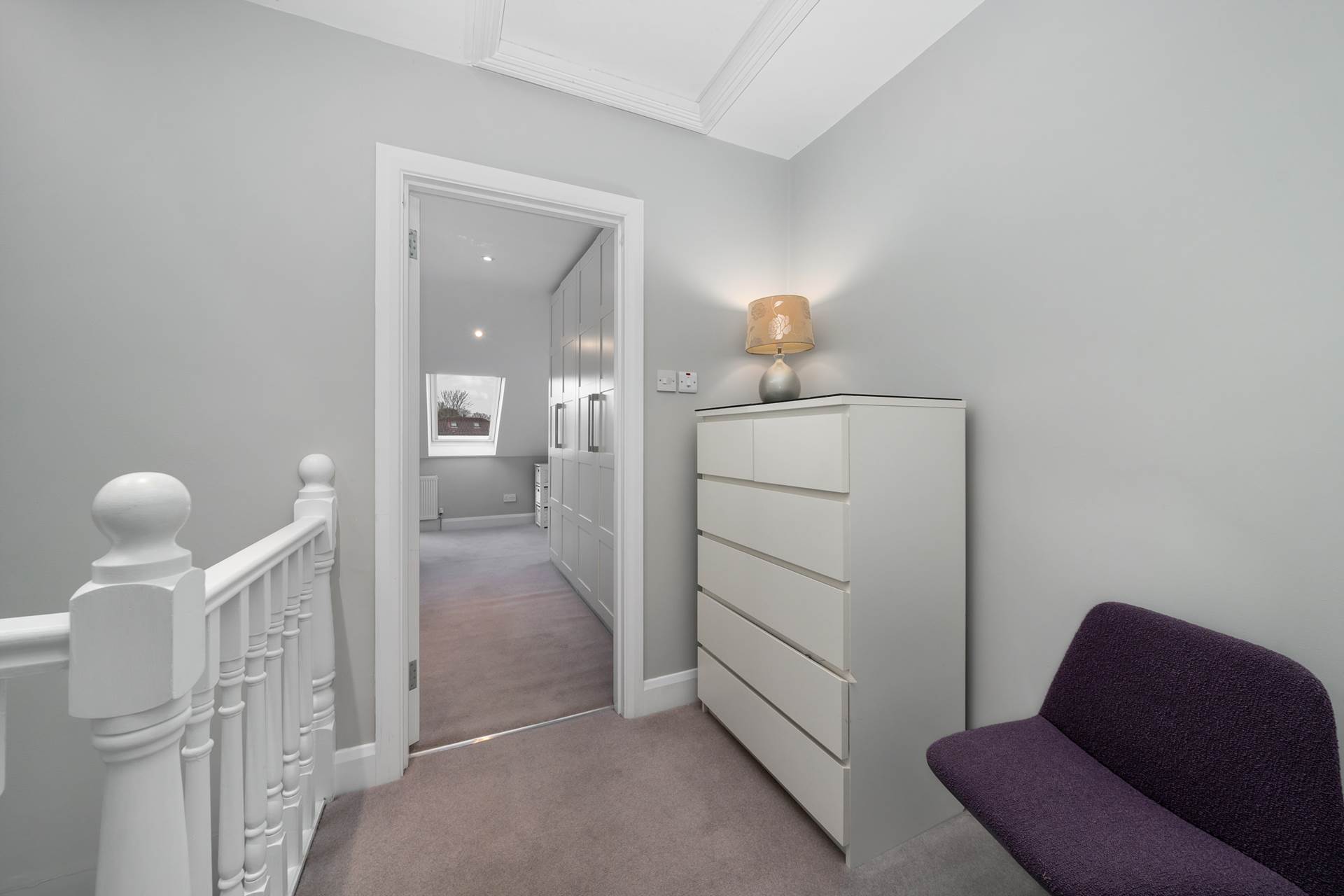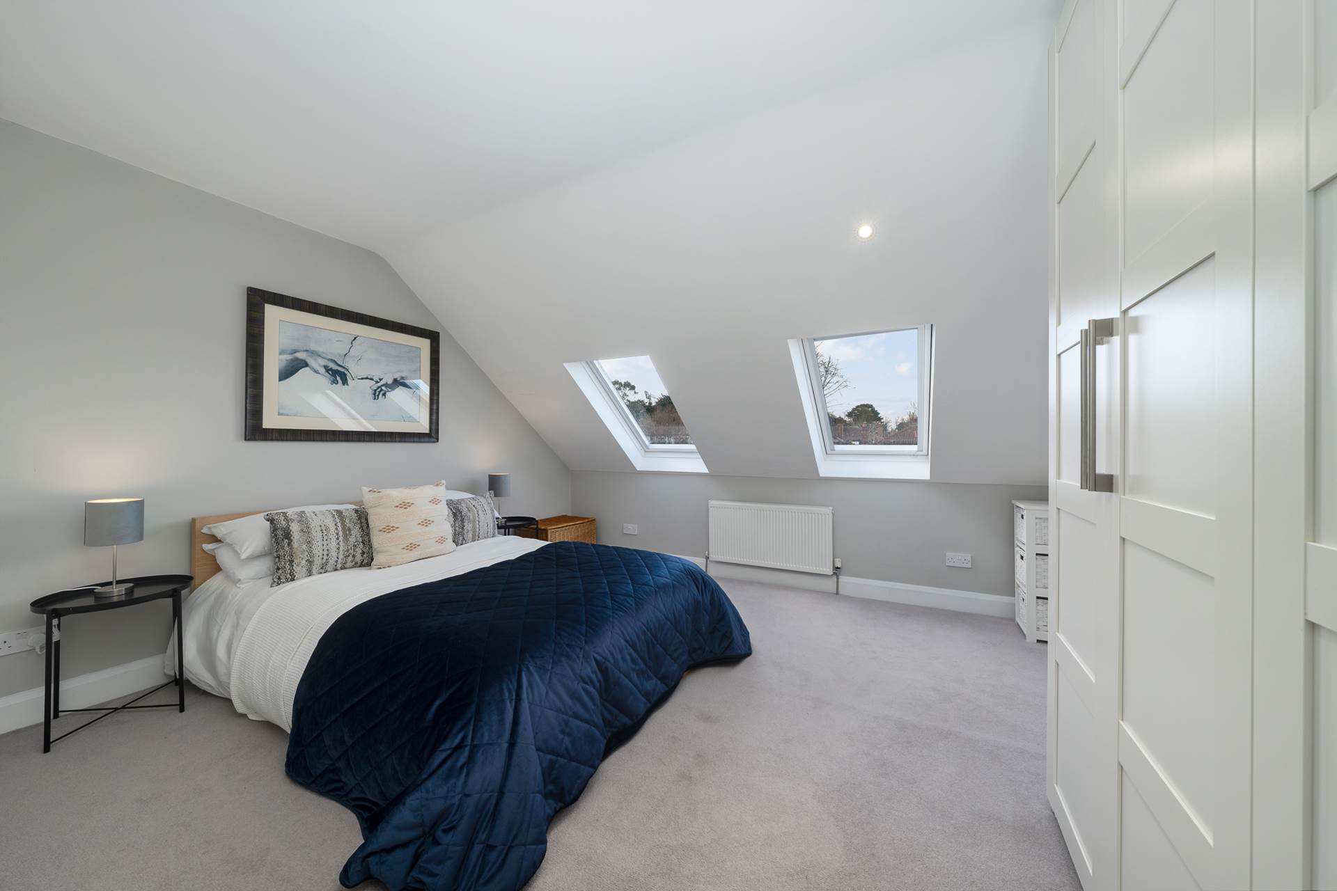 Two spacious wardrobes. Two skylights - with integrated blinds. Carpet. Recessed lighting.