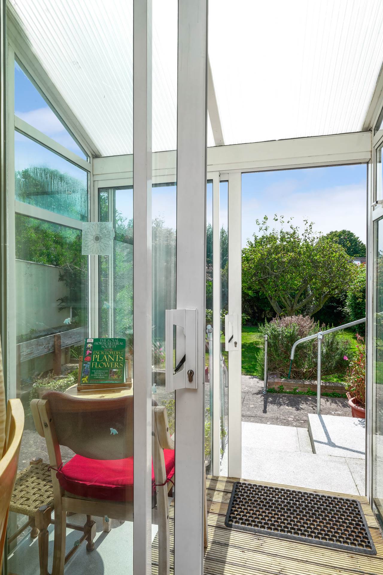 Ideal for sitting in the sun! SW facing. Glazed on all three sides. Tiled floor.