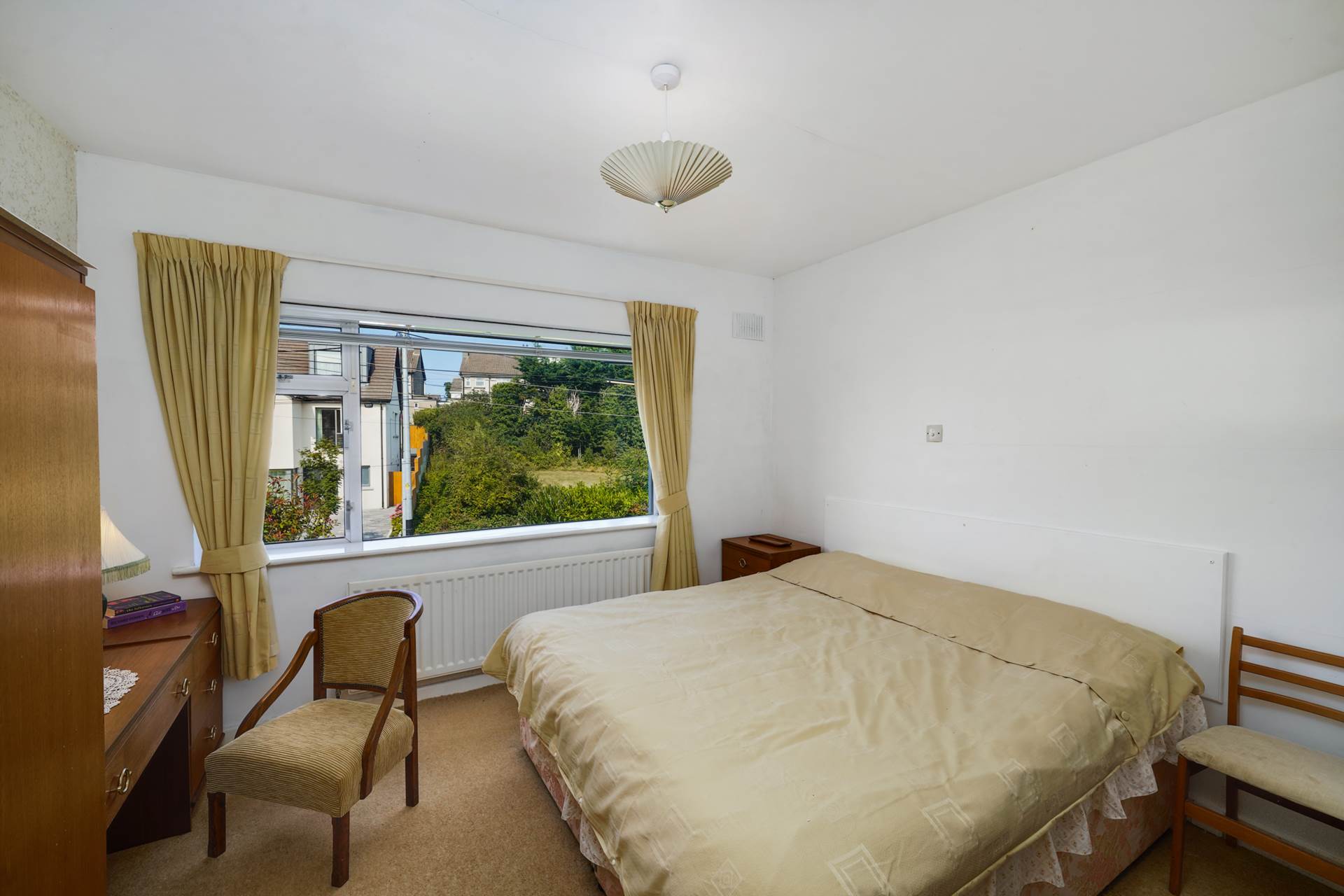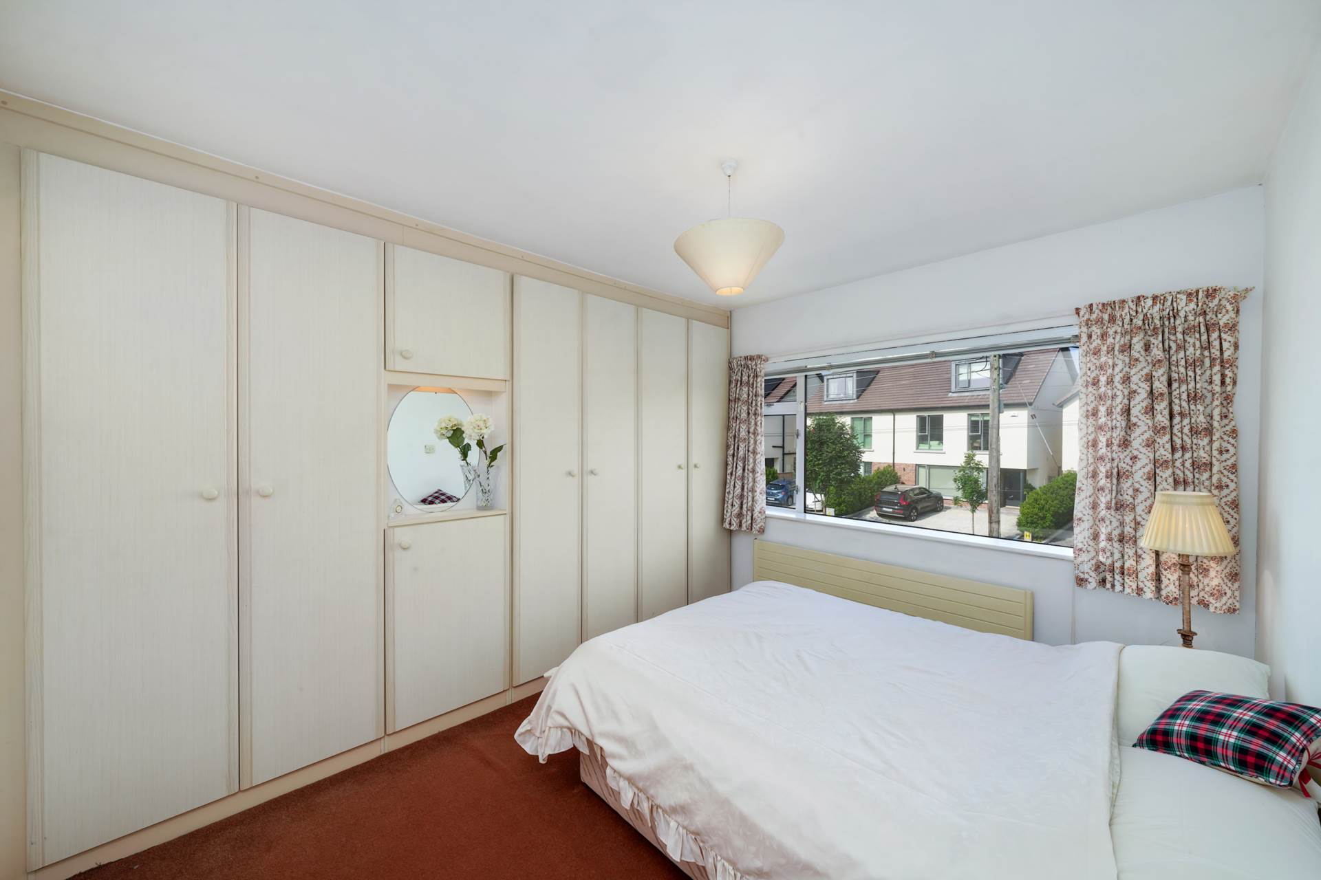 Carpet over pine floorboards. Fitted wardrobes with integrated dressing table. Window to front.