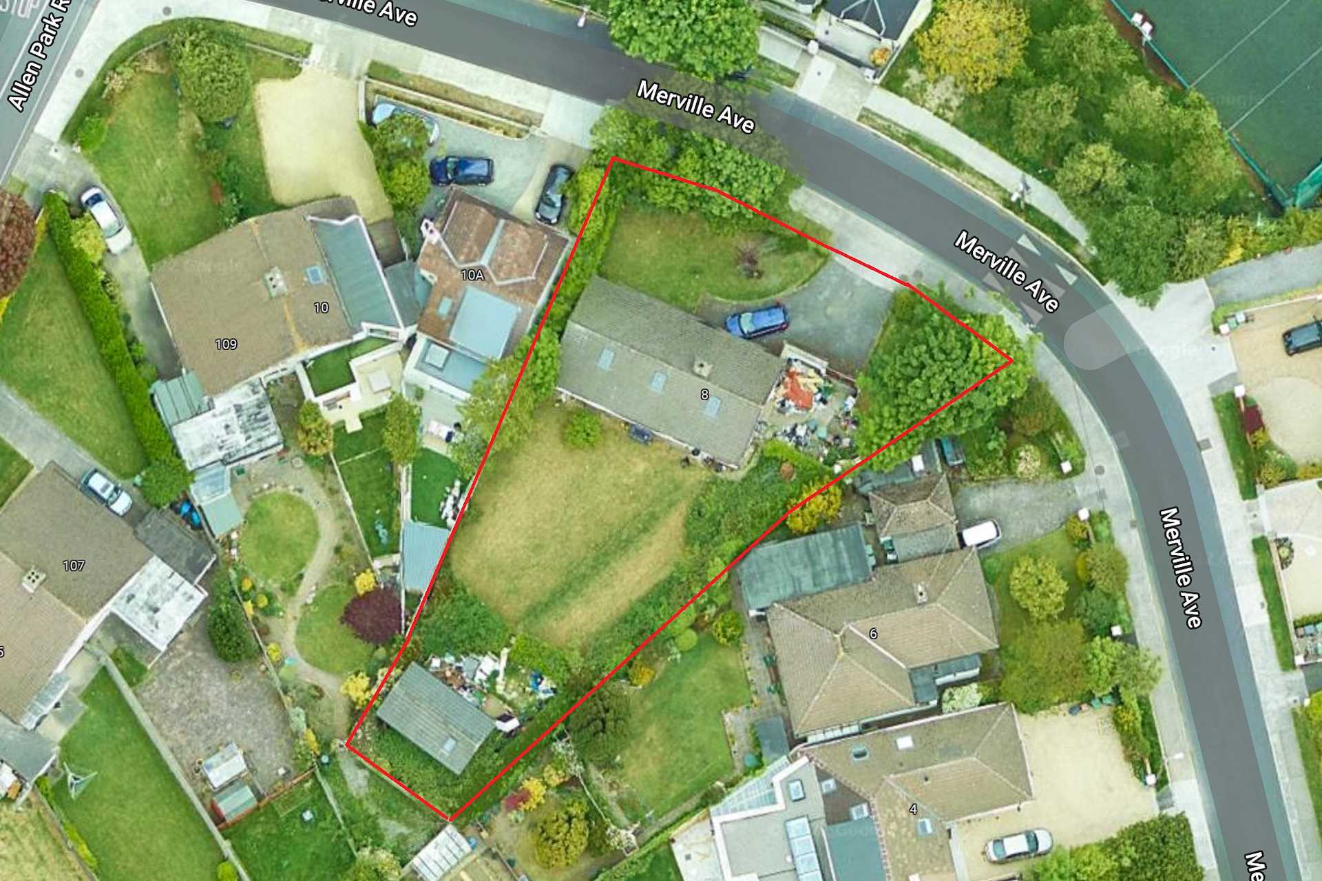 Detached bungalow on 0.25 acre site with enormous potential for a very large house or even two (s.p.p.)! Sunny southwest facing back garden. Approx 30m of road frontage onto Merville Avenue.