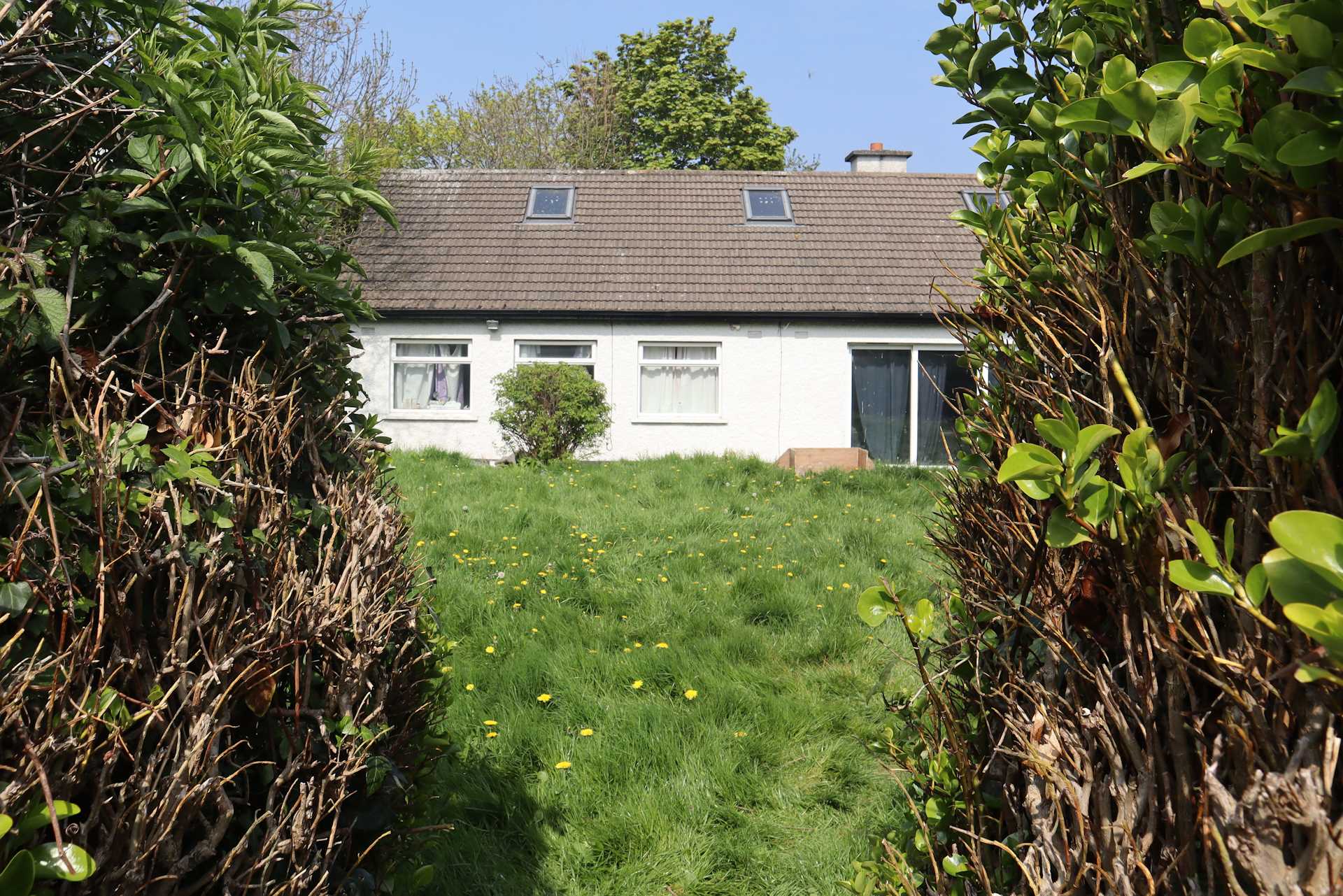 The bungalow has an entrance hall, living room, kitchen, bathroom and three bedrooms. There is a large attic with 3 x velux windows, but no stairs. Beside the kitchen there is a side garden, about 10m wide, with a shed and double gates to the front. On the other side there is a storage shed between the house and the boundary. There is a studio at the end of the garden, through a gap in the hedge.The house does not do justice to the site. This is a prime opportunity to build the house of your dreams, on a generous site in a fantastic location.