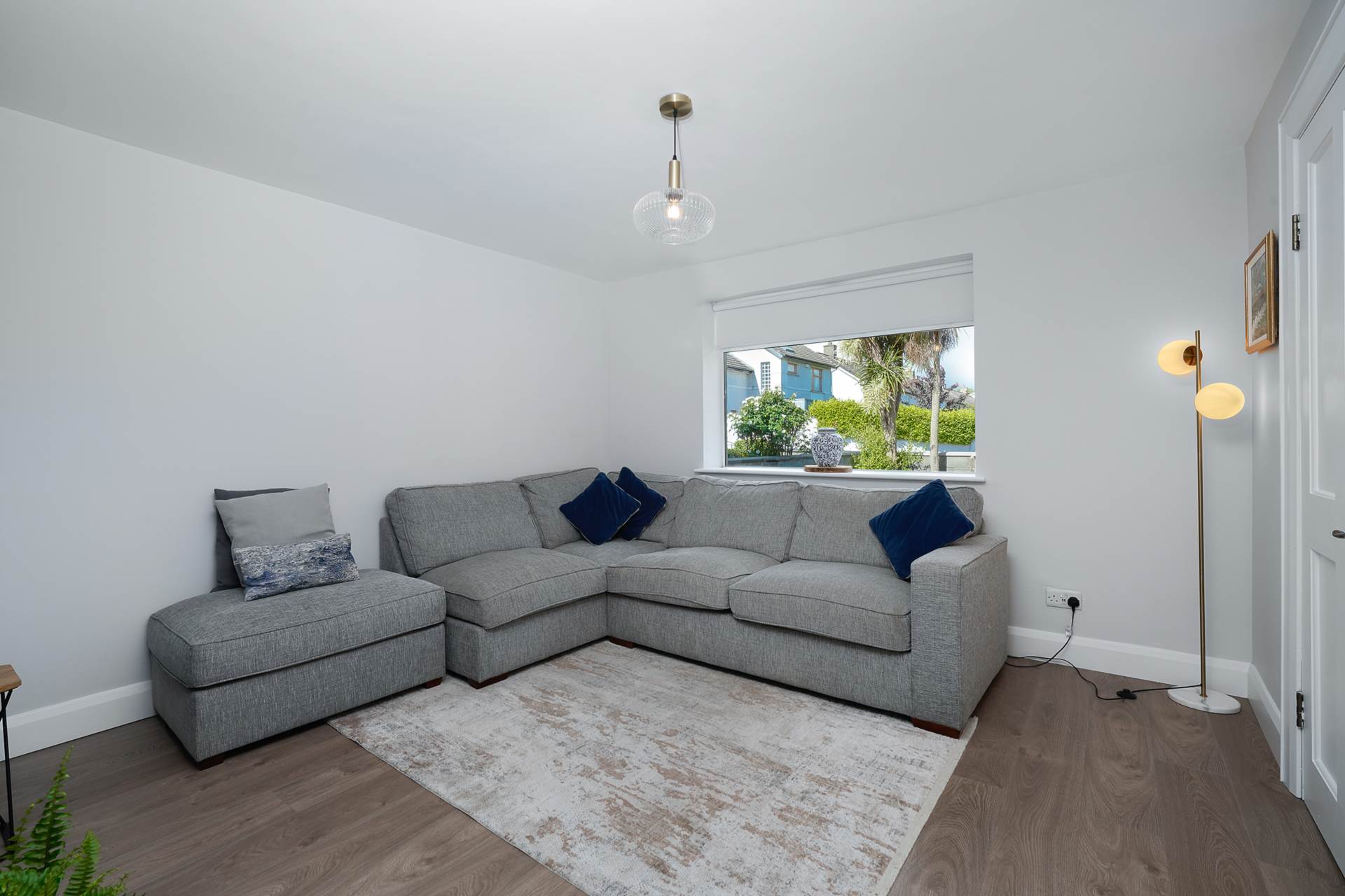 Large window to front. Fireplace with flue designed for a solid fuel stove. Larger than usual opening to kitchen creating an open-aspect.