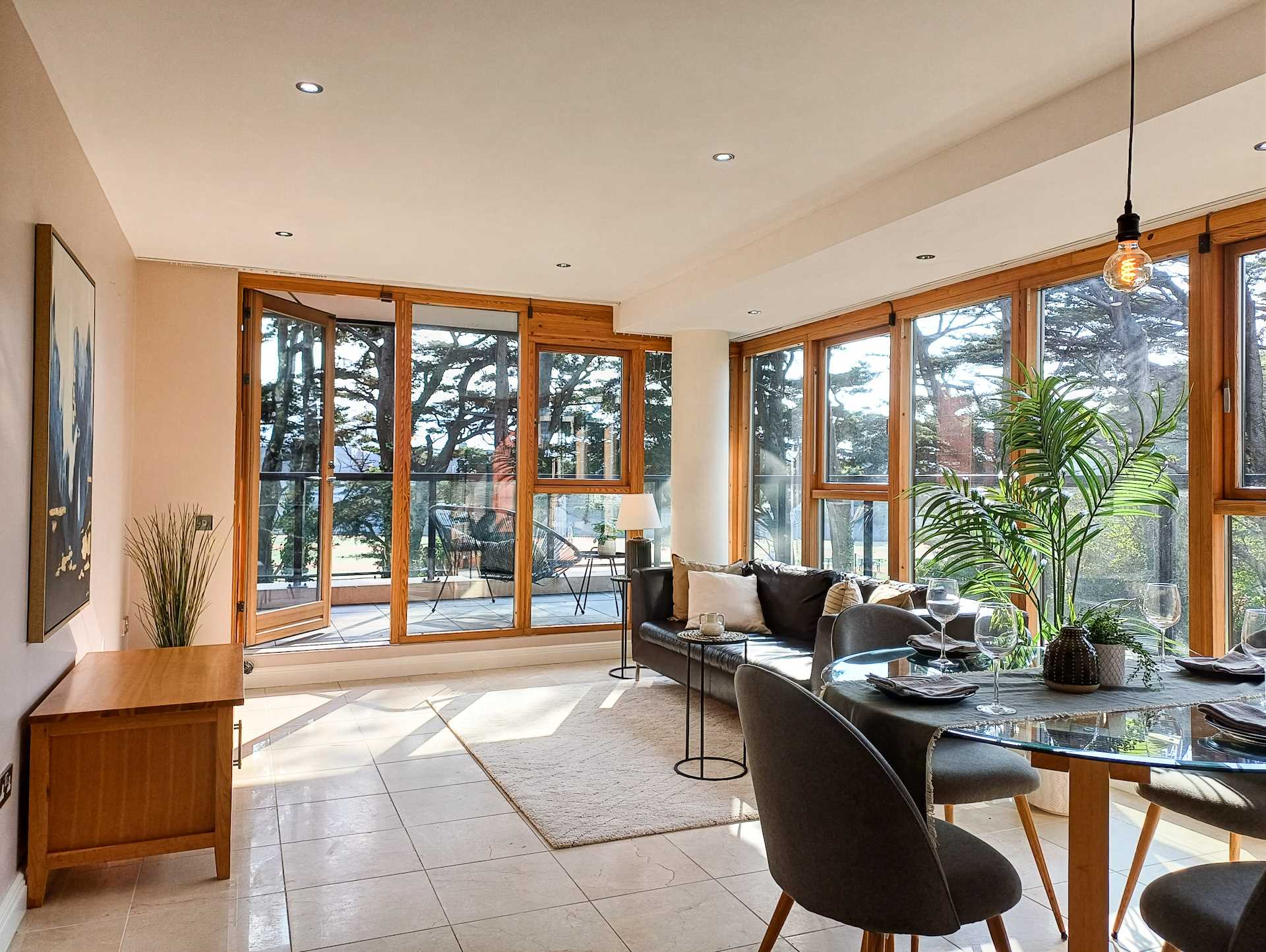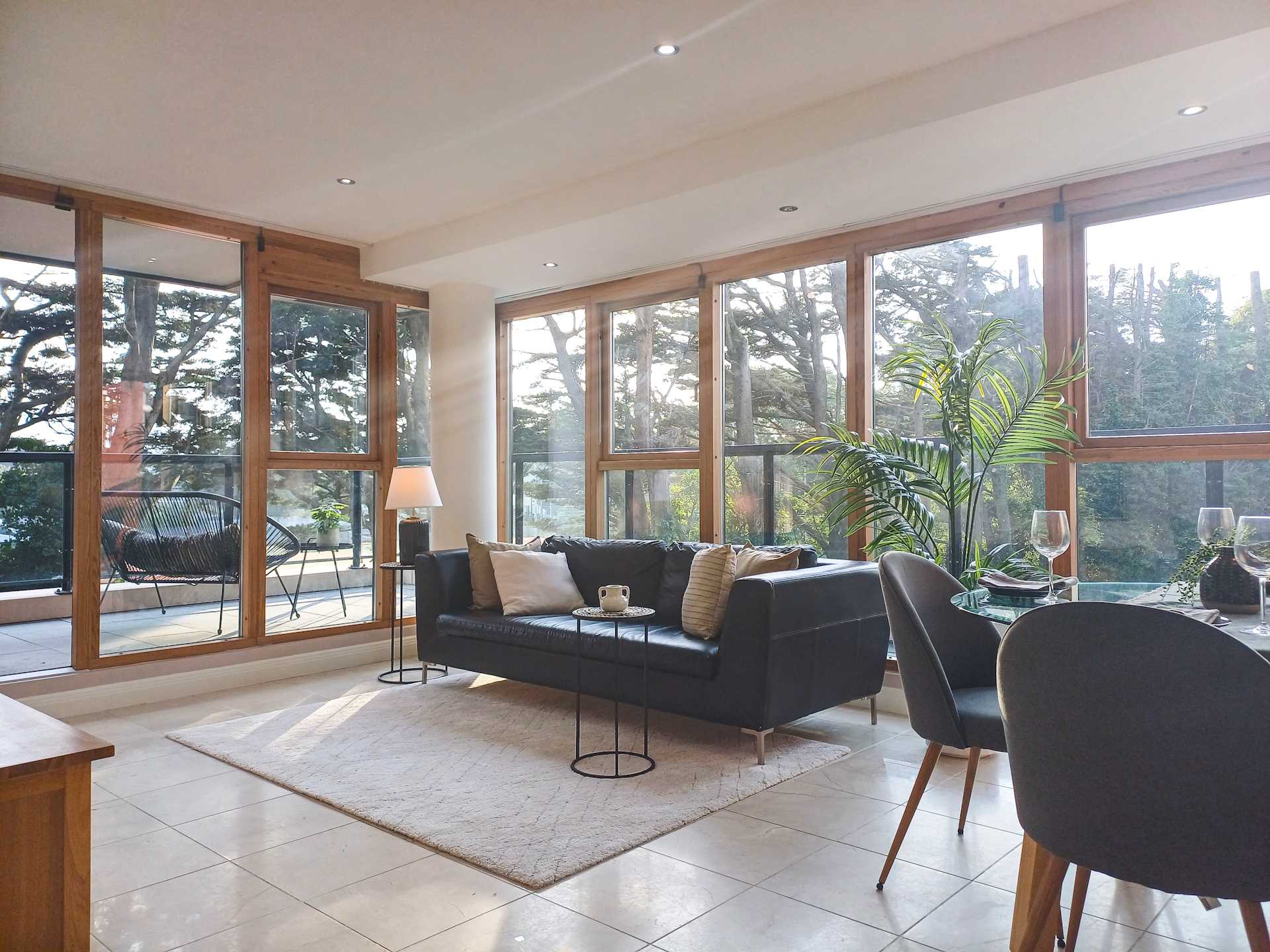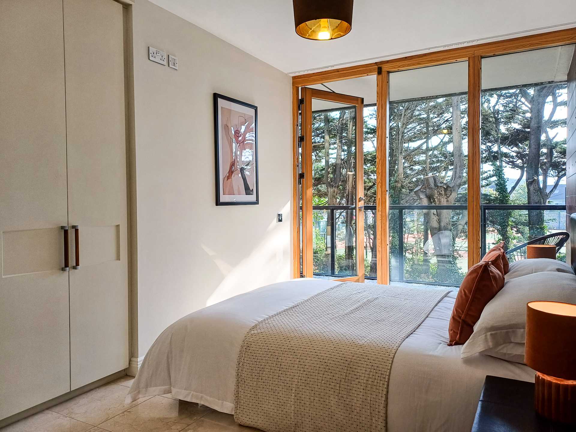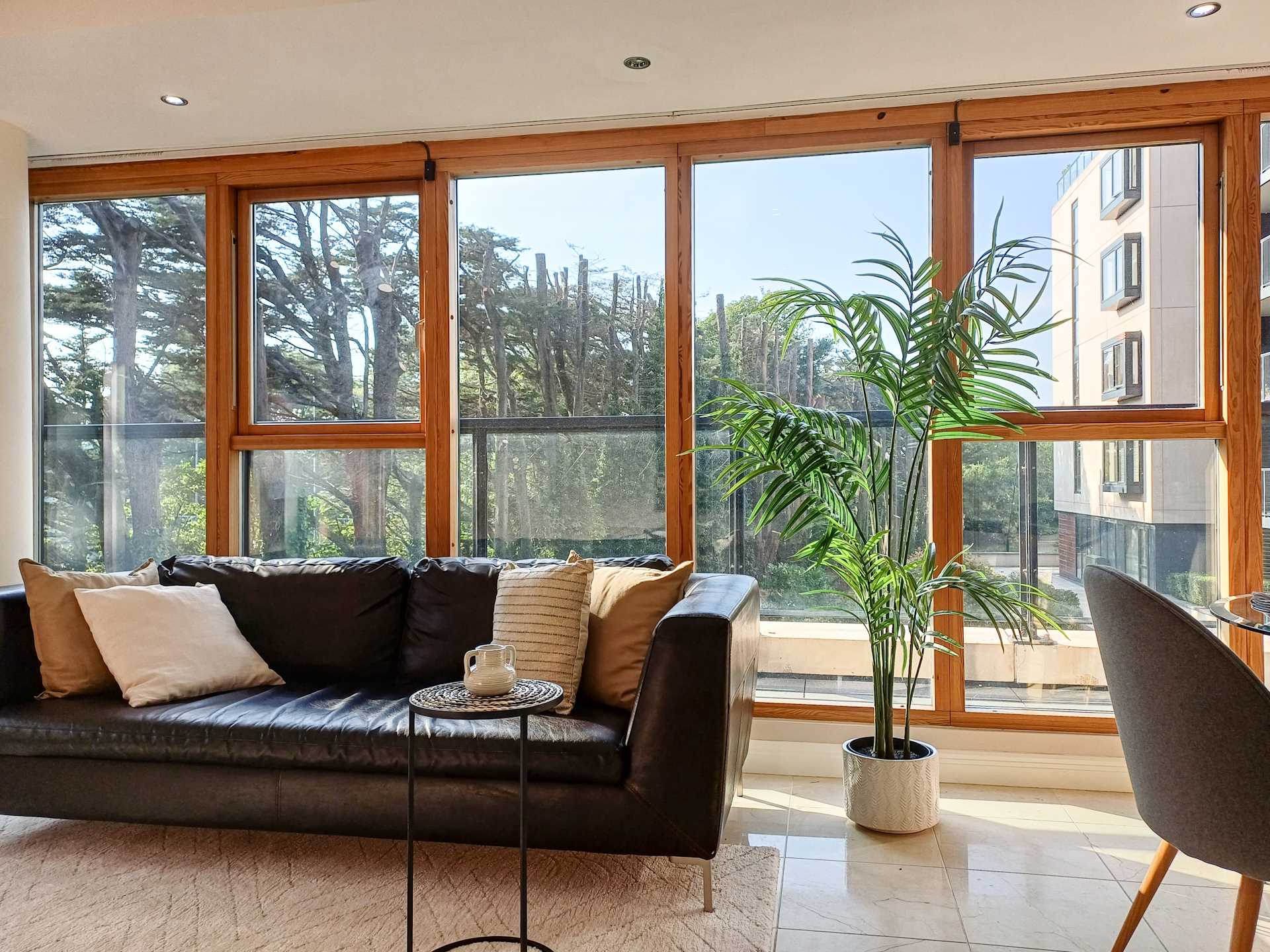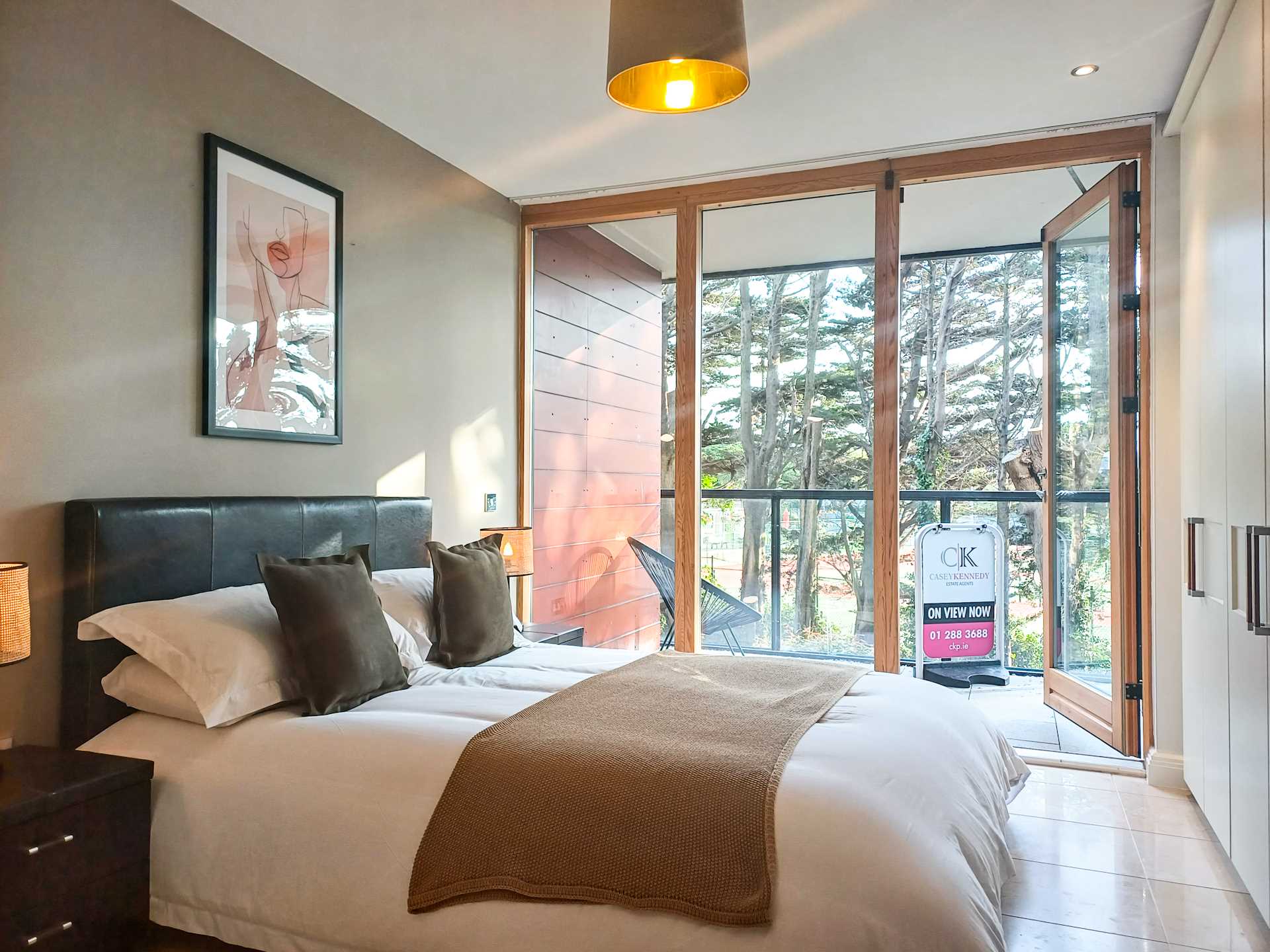 9 Quartz is an exceptionally bright and secluded dual aspect first floor corner apartment in a peaceful setting at the back corner of The Grange facing Leopardstown Park and Tennis Club. It is not overlooked and is well away from any road noise or construction activity. It boasts large full height windows and spacious wrap around balconies getting excellent afternoon and evening sun.