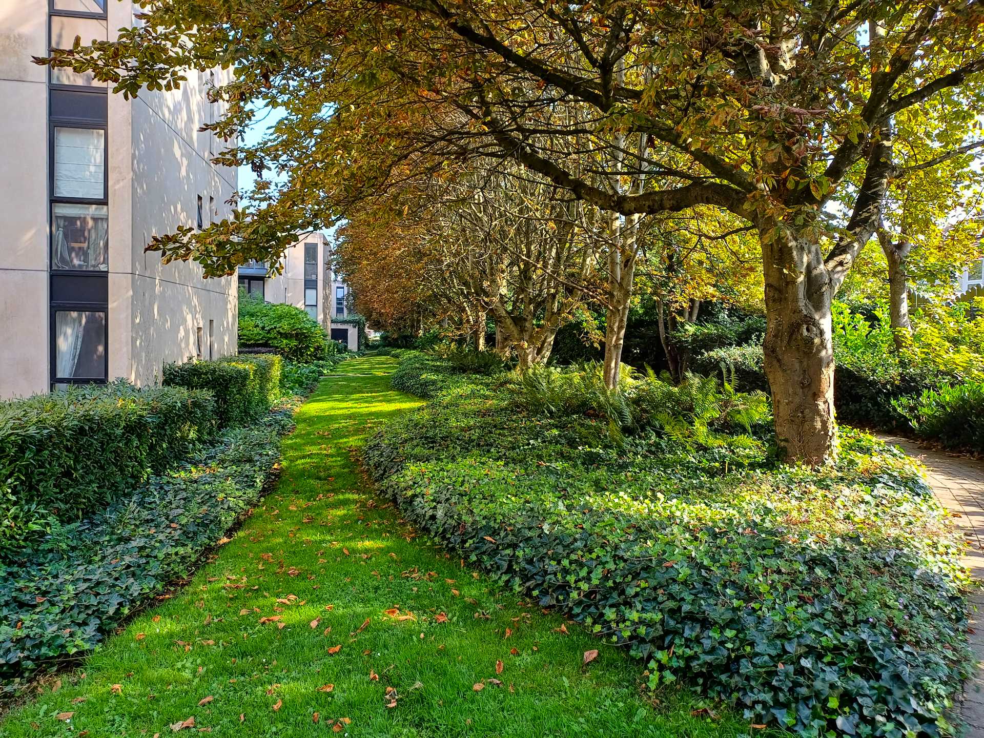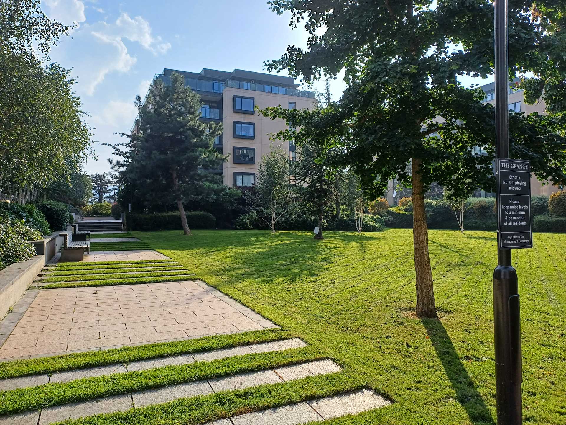 The Grange was built in 2006 to exacting standards as a prestige development between the Stillorgan Road and Leopardstown Park. The gardens are beautifully maintained and laid out with two playgrounds, sunny seating areas, landscaped plazas, wide access avenues and a feature stepped waterfall at the main entrance. There is a very helpful concierge manned 24/7, and an on-site creche. The internal common areas including the entrance hall, landings, stairs, and lift are clean and well maintained. The service charge is €2980 per annum. There is a pedestrian entrance to Leopardstown Park beside the creche giving easy access to the wide open play areas and the tennis club.