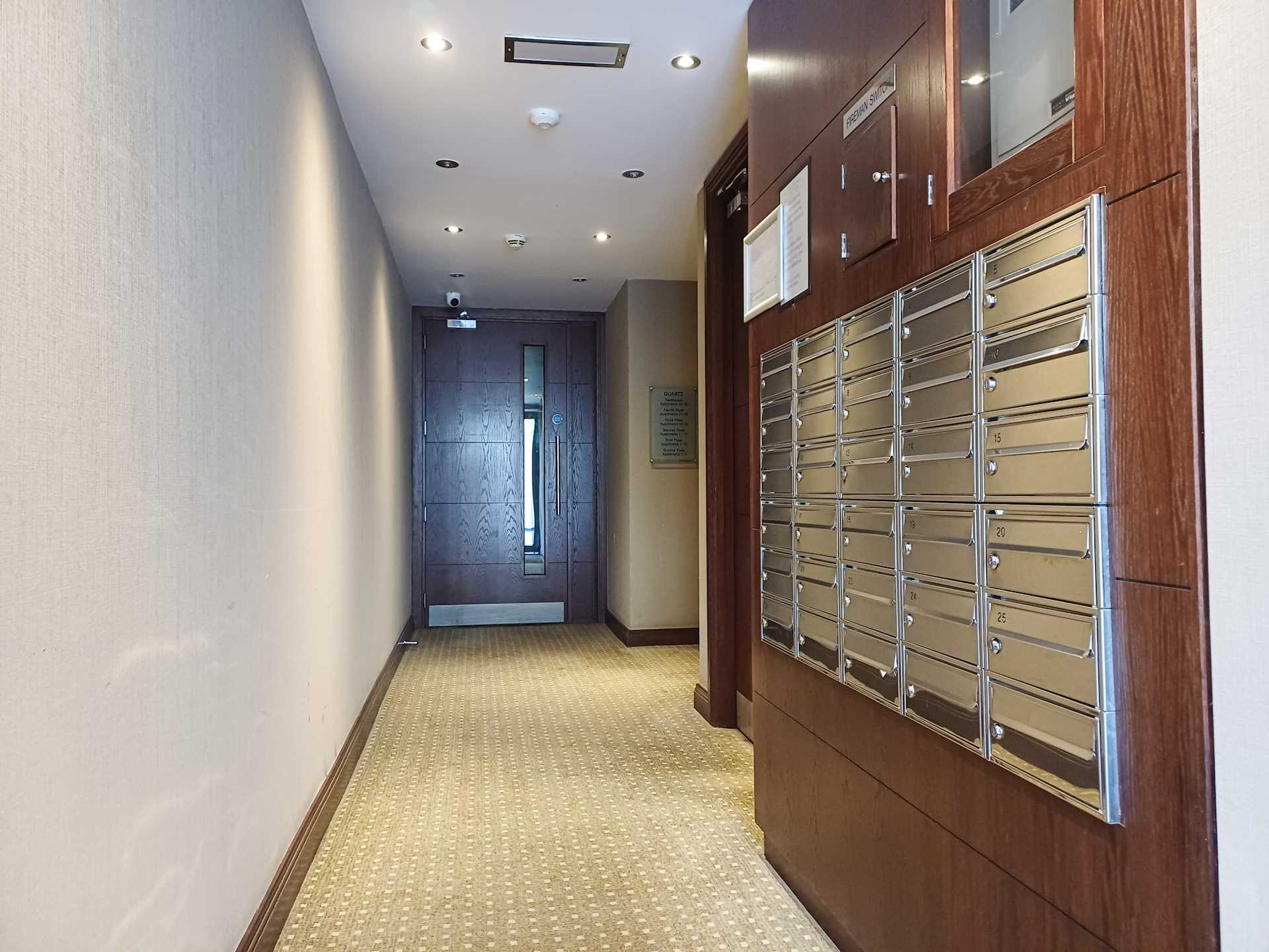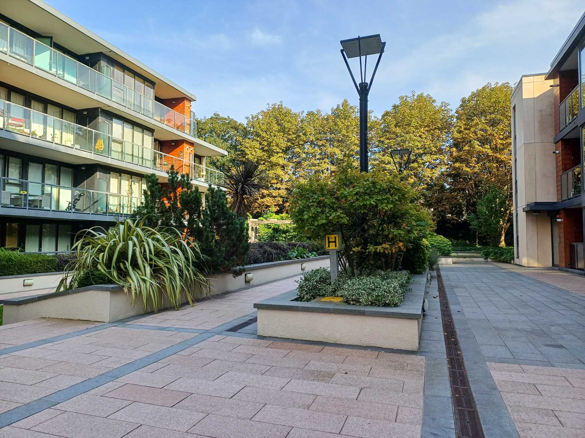 Lovely wide assigned parking space in the secure underground parking, just opposite the door to the lift. Additional visitor parking close by (max. stay 4 hours). The main gate facing the entrance off Brewery Road has an intercom for guest access.