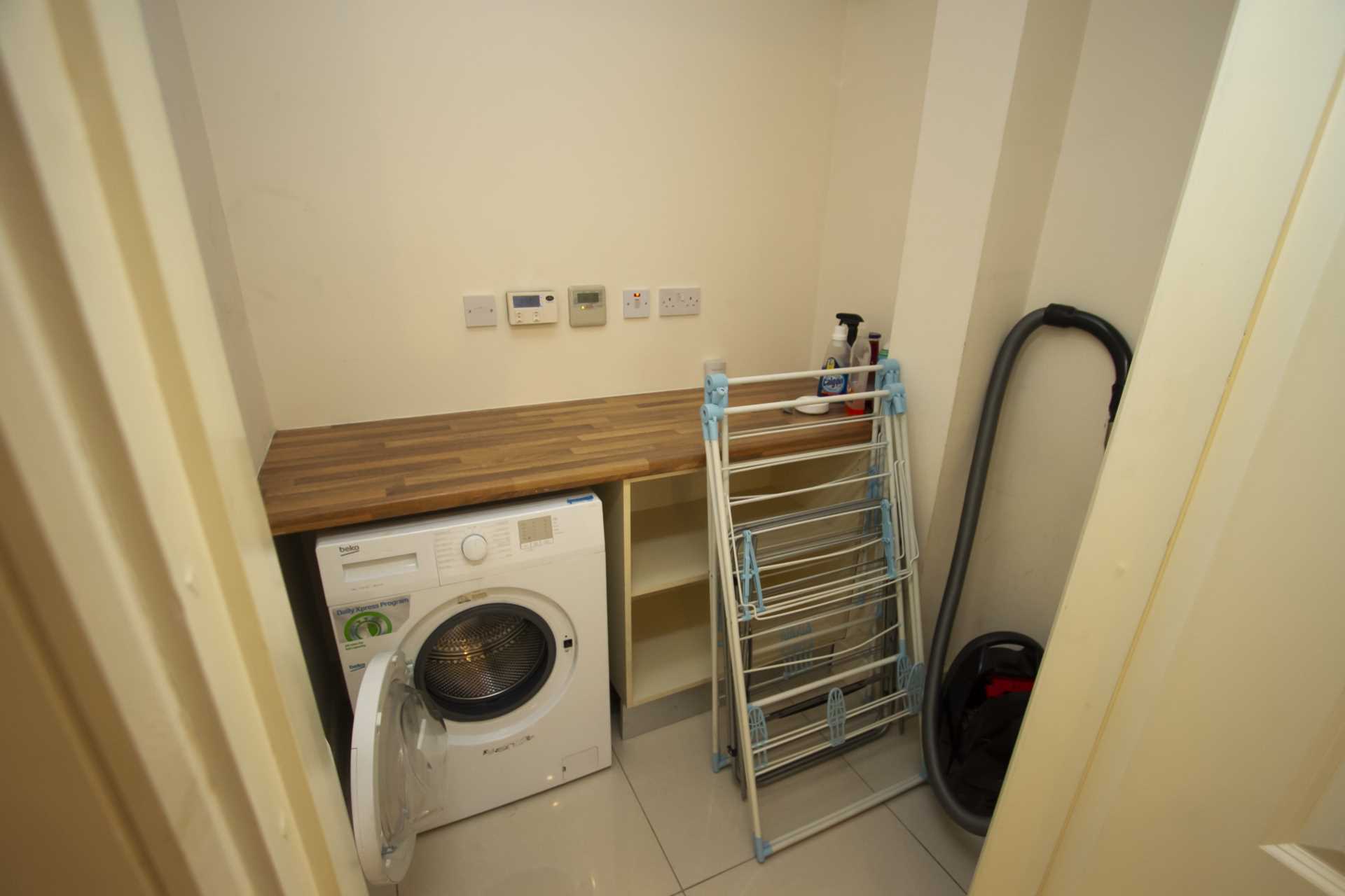 Fully fitted shaker style kitchen with silestone countertop. Ample storage, Bosch oven and hob, tiled floor, partially tiled walls, recessed ceiling lighting and under-cupboard lighting.