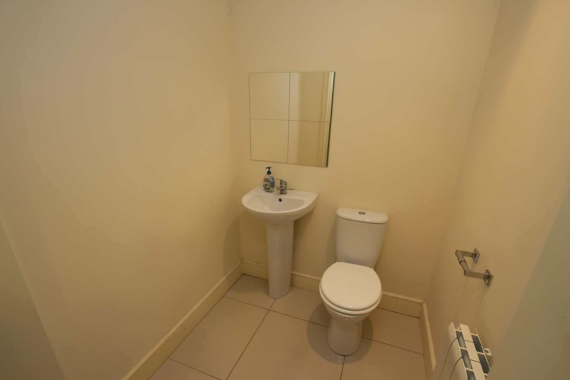 Guest W.C.: (1.67m x 1.39m) with w.c., w.h.b. and porcelain tiled floor.