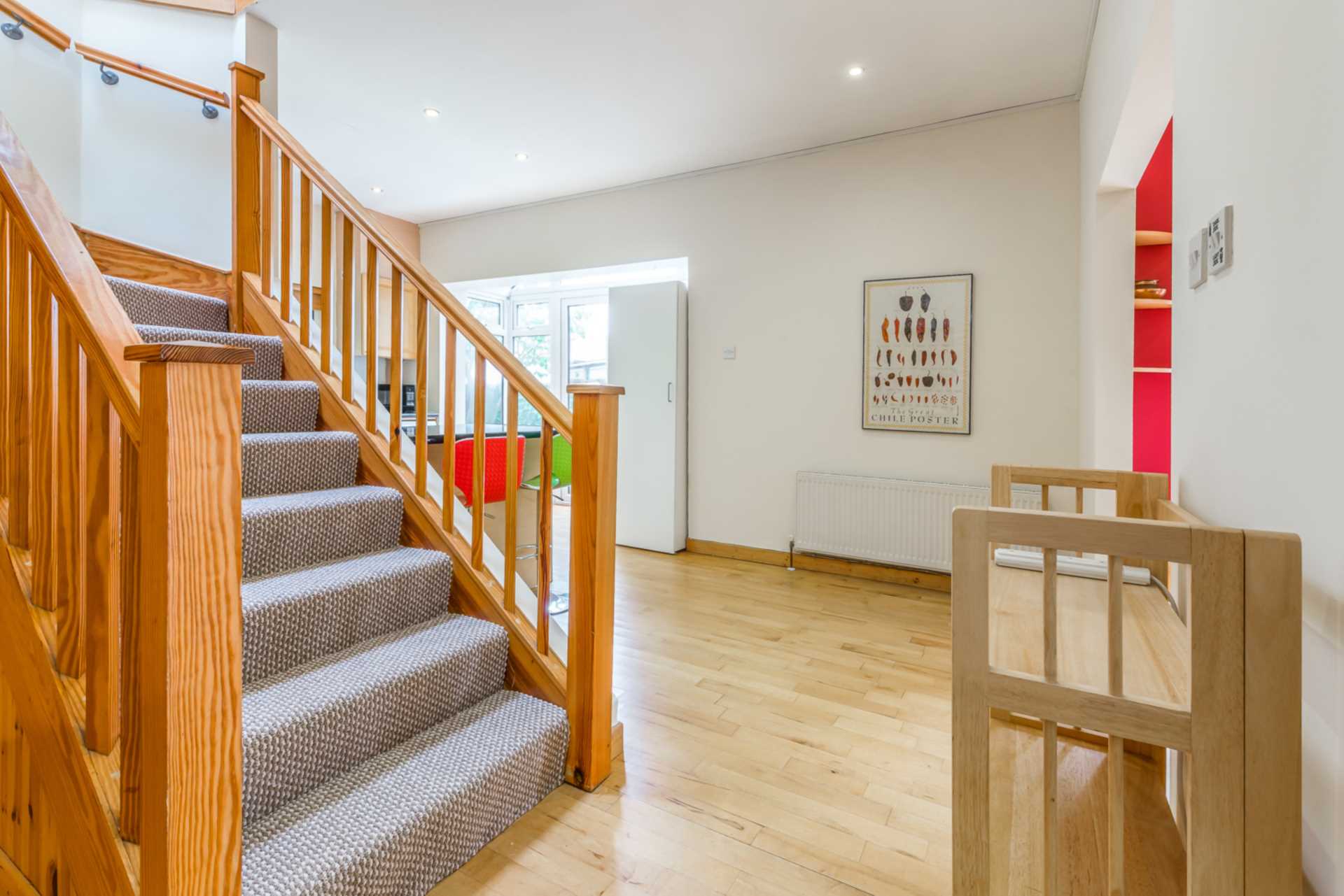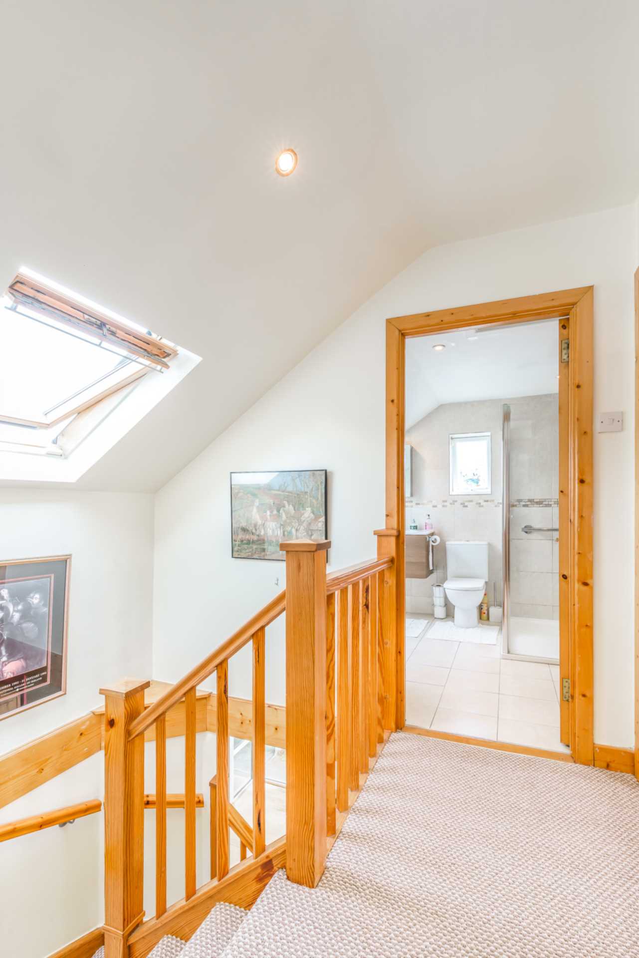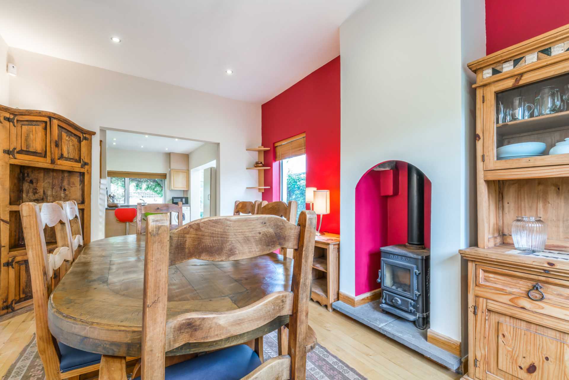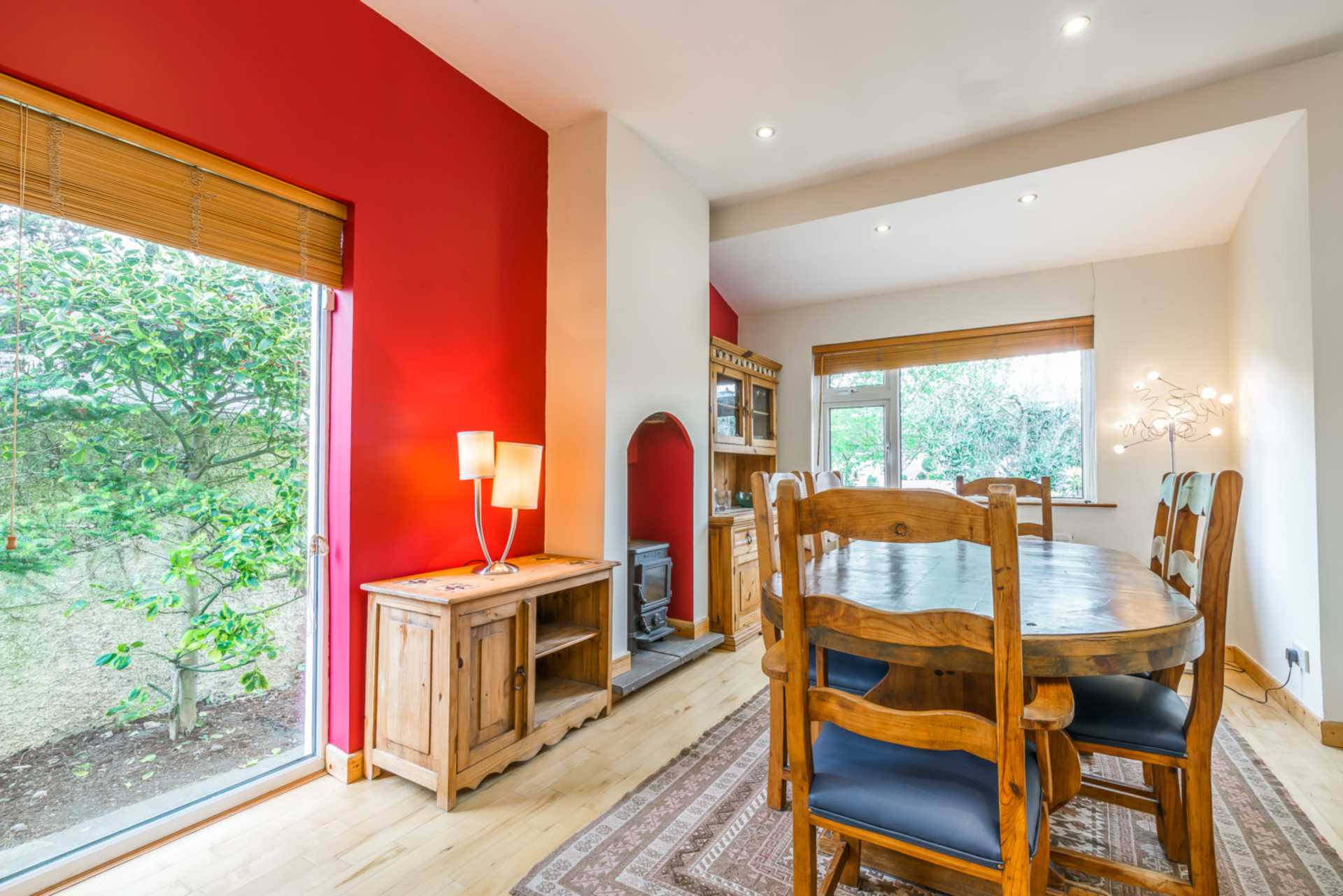 This perfectly presented property is ideally located close to schools, shops, leisure facilities and public transport. With off street parking to the front and a private rear garden. The accommodation comprises Porch entrance leading into a Hall with wooden floor, Storage/Cloakroom, Livingroom with wooden floor and feature fireplace. Diningroom with wooden floor and gas fire. Fully fitted Kitchen with dishwasher, washing machine, Gas hob and electric oven and with a door to the garden. Also downstairs is the master bedroom with wooden floor and doors to the rear garden, En-suite shower room with tile floor. Upstairs there are 2 Double Bedrooms both with fitted wardrobes. Large Shower room with tile floor and Storage Press.
