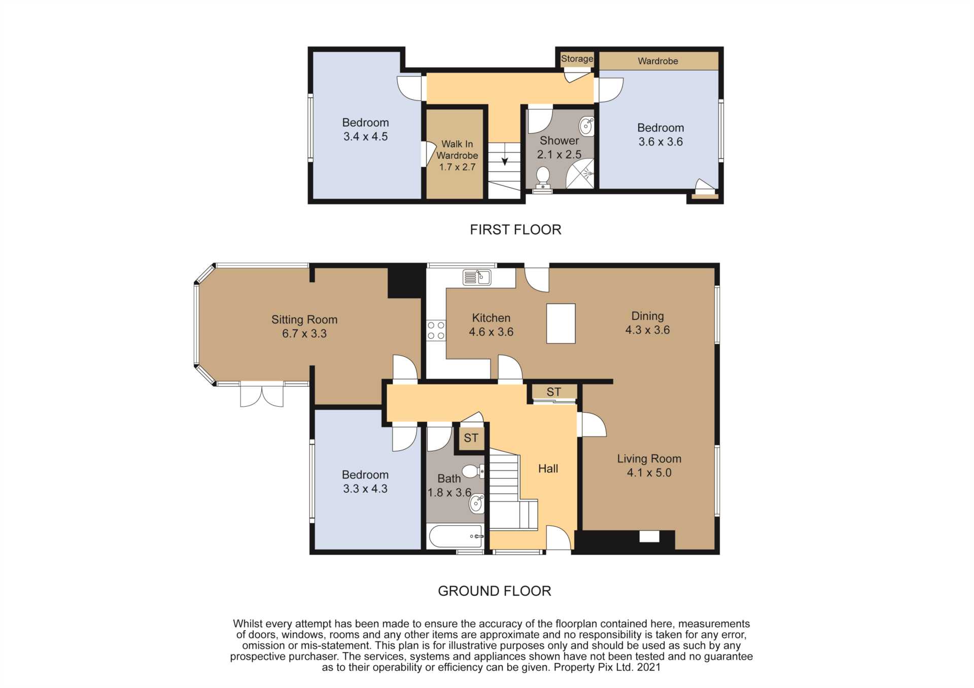 - Bedrooms and bathrooms on both floors.