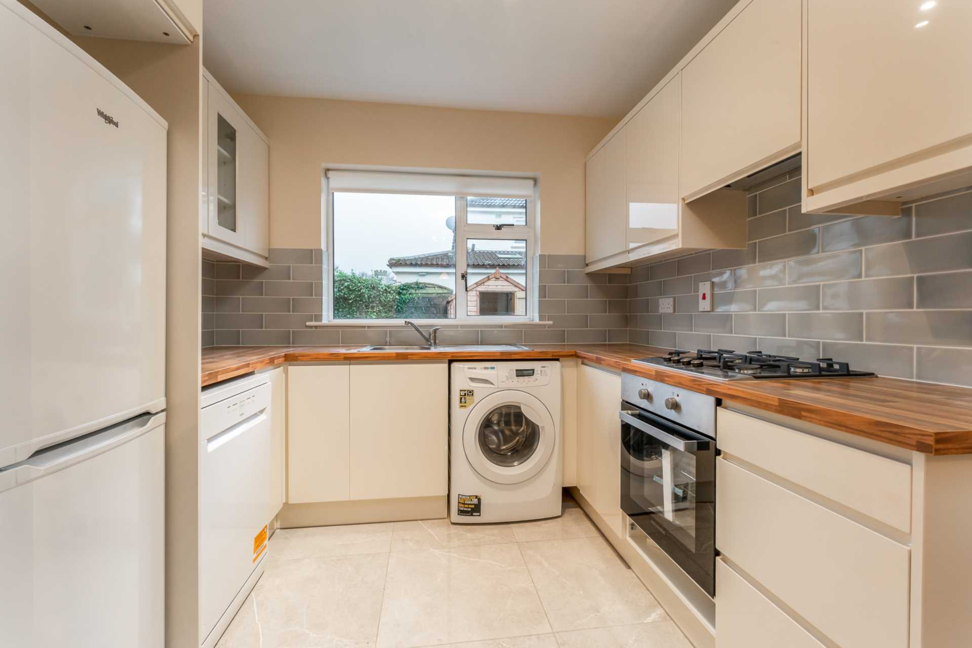 With new gas hob and electric oven, fridge freezer, dishwasher and washing machine