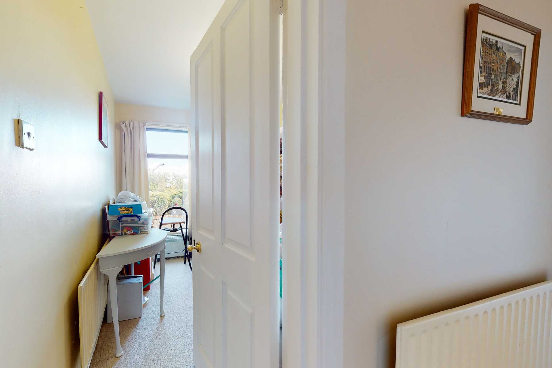 Large single/small double bedroom, currently in use as a home office.