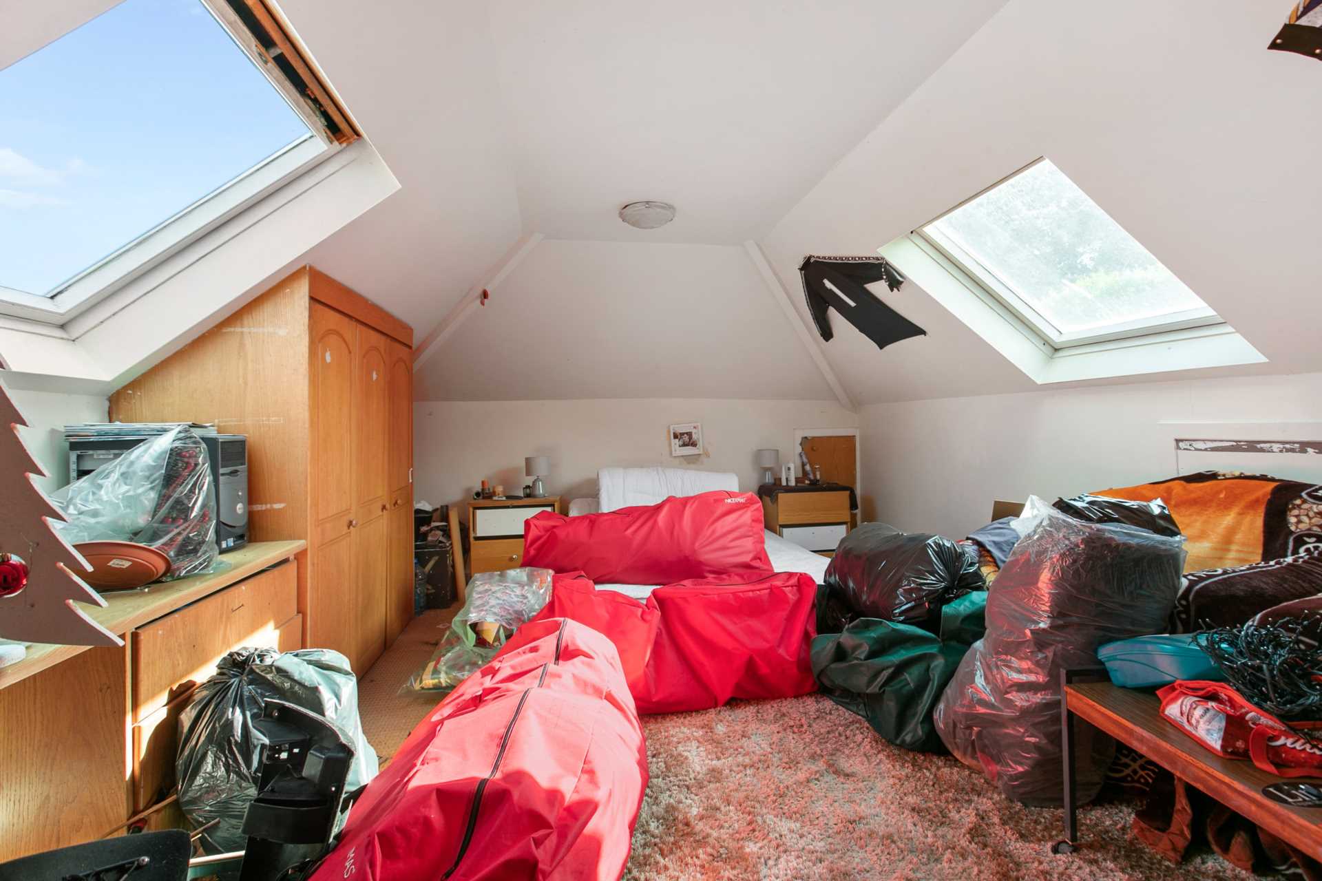 Double bedroom. Carpet. Curtains. Currently used as a storage space.