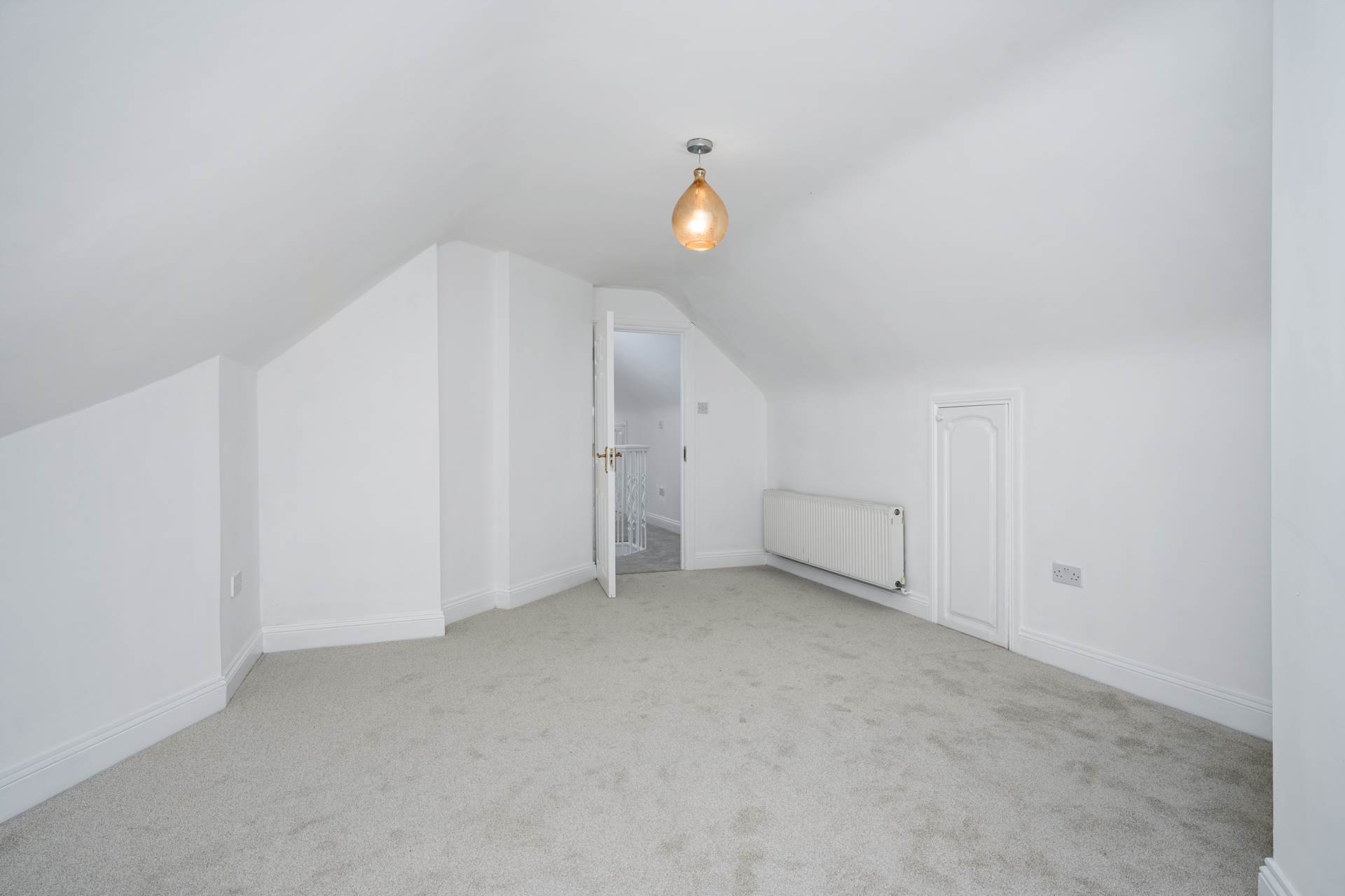 Between the two main bedrooms a door leads to a small room off the landing which contains the spiral staircase to the attic. If alternative attic access were to be fitted this room could be used as a walk-in wardrobe for the master bedroom.