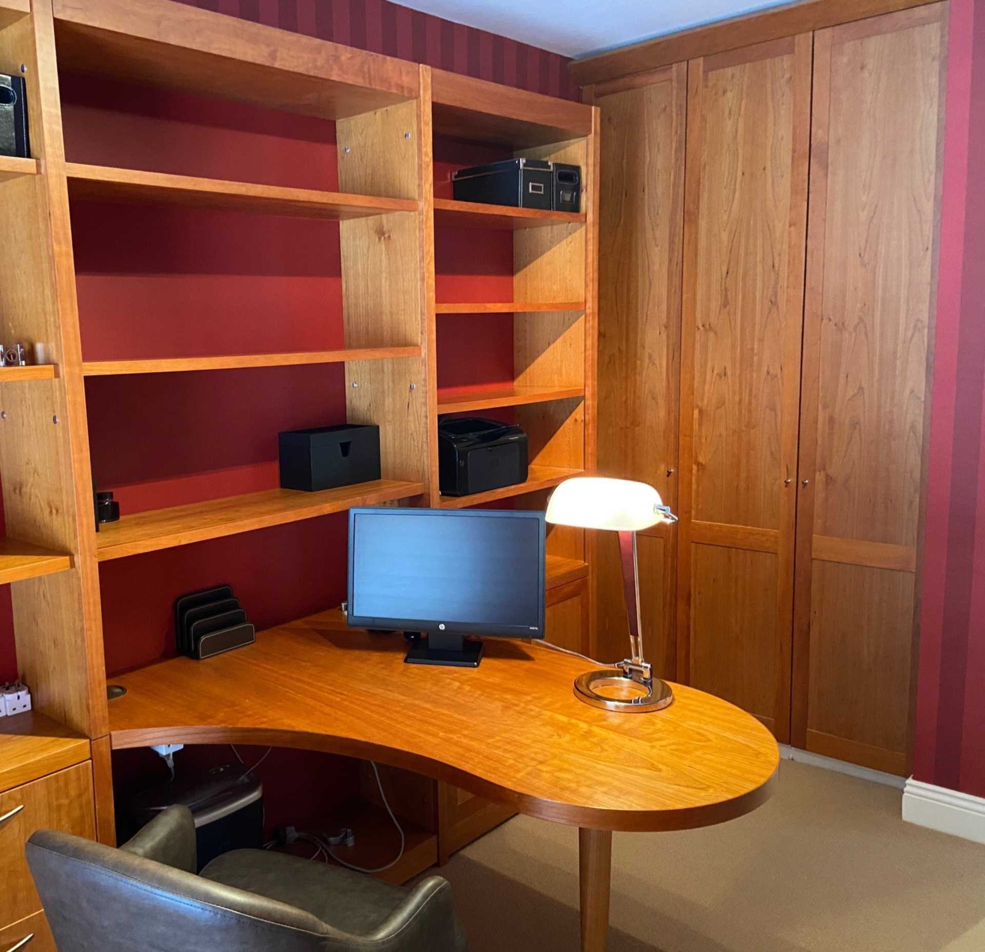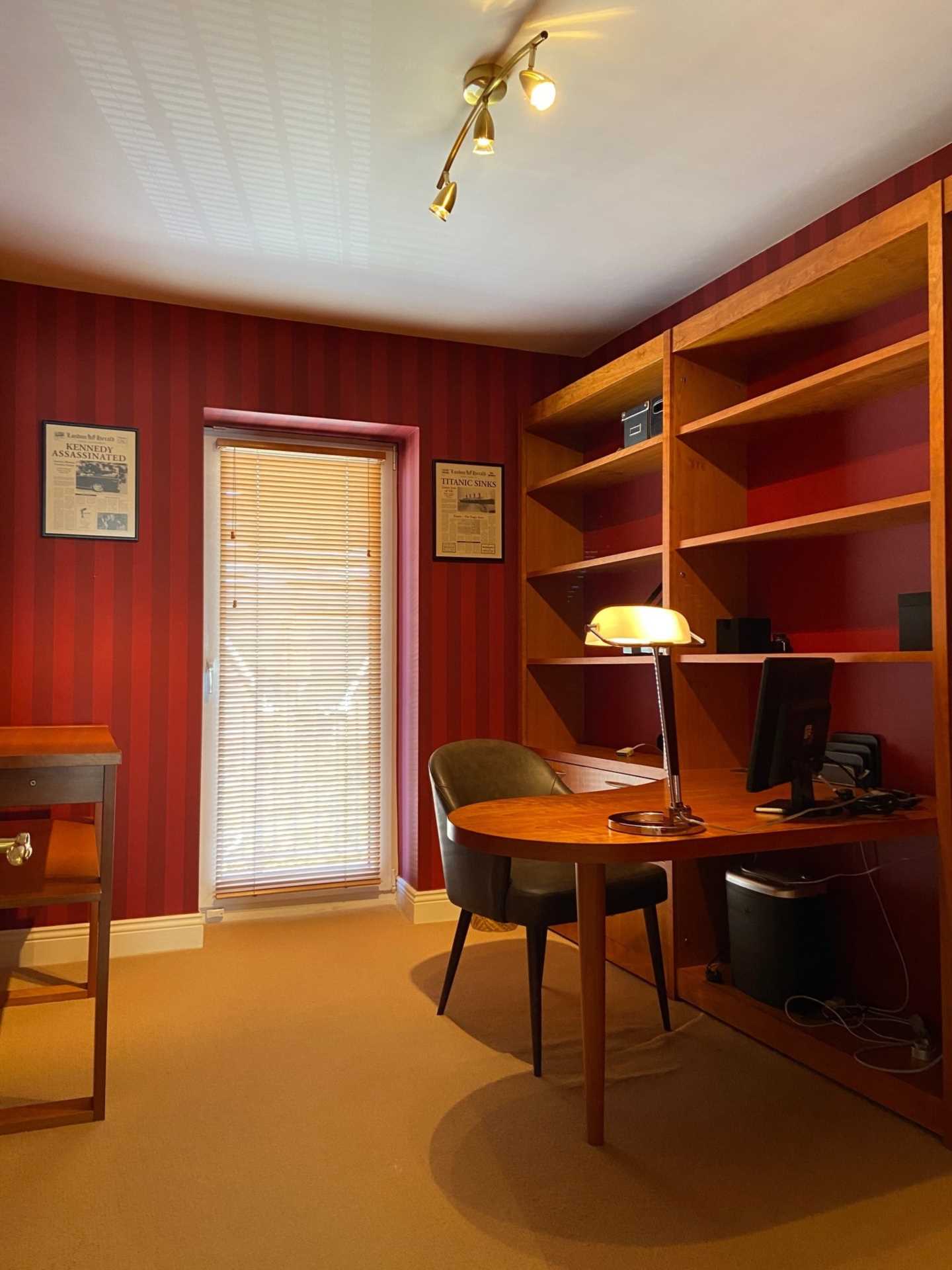 to a custom designed home office with plenty of storage), master en-suite and a guest bathroom.