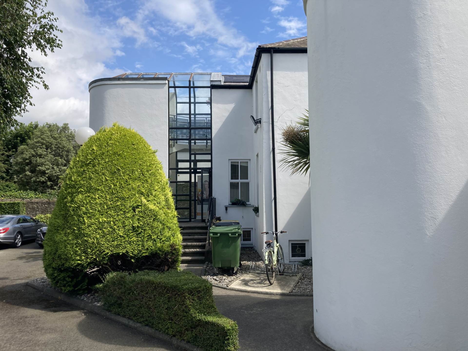 A private entrance for the practitioner, enabling discreet arrival and departure without passing through the waiting room.