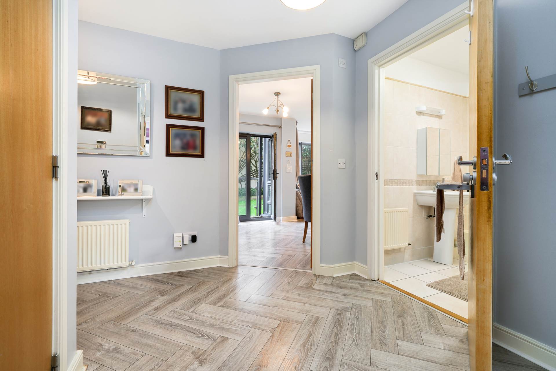 Solid wood flooring, intercom to main door, alarm panel, Hot Press and separate cloak/storage closet.