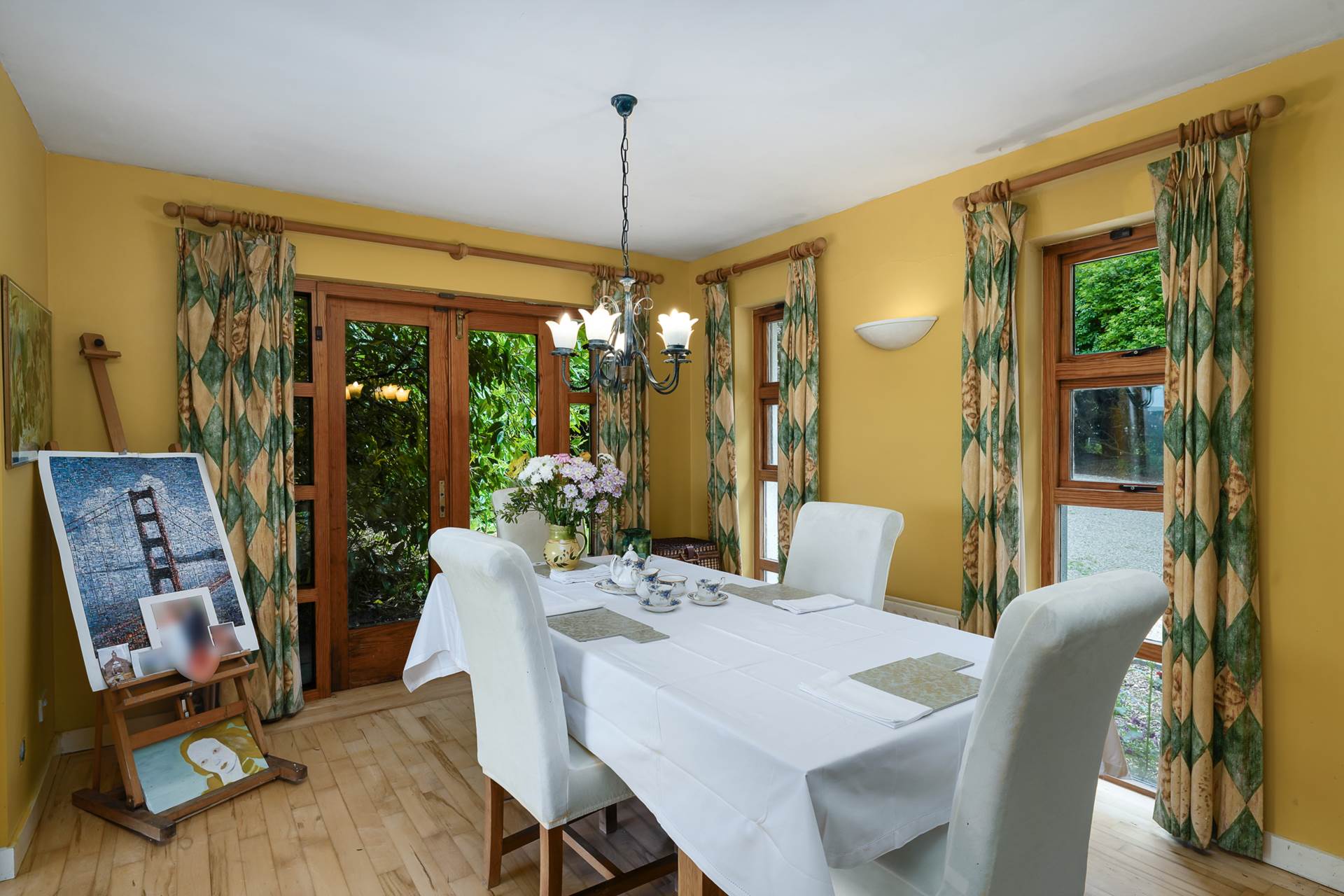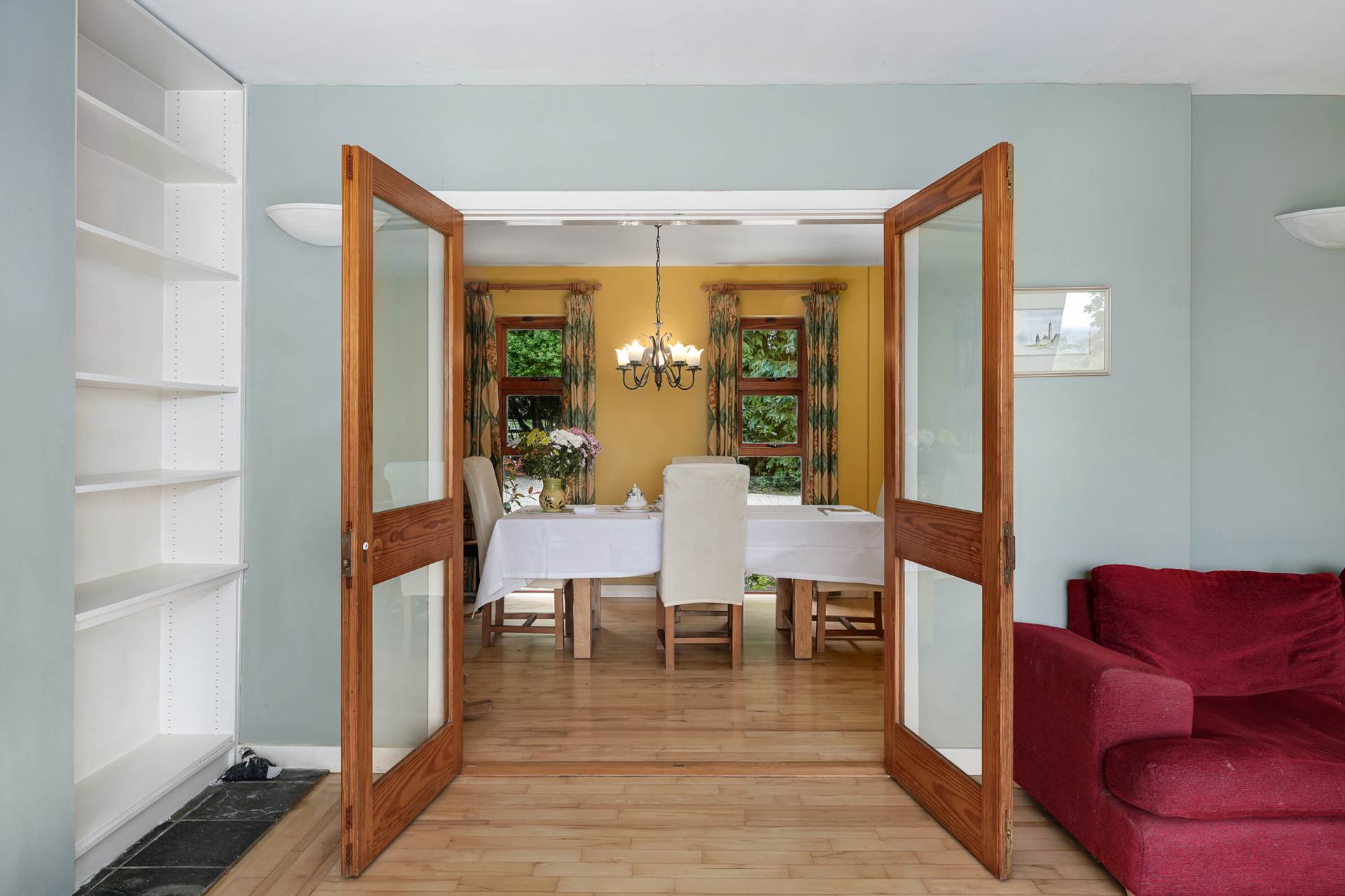 French doors opening from both main reception rooms to the gardens.