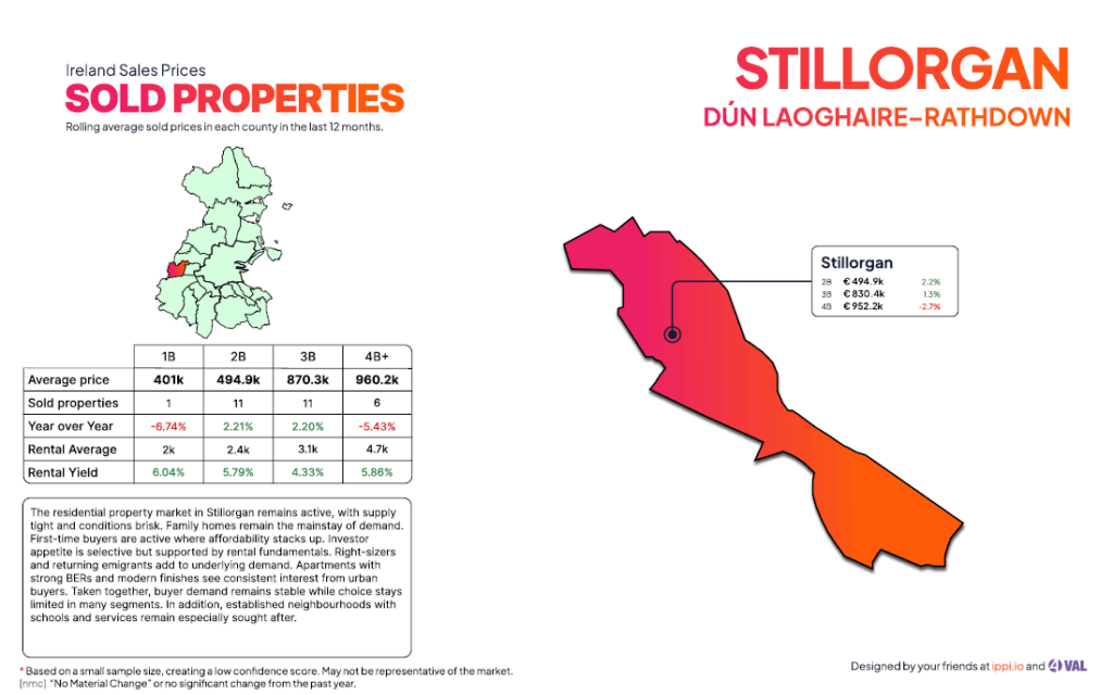 These figures highlight Stillorgan’s broad appeal — from investors seeking apartments to families willing to pay premiums for larger homes with gardens and character.
